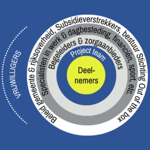 Alle zorgaanbieders vanuit Wet Maatschappelijke Ondersteuning (WMO), de Wet Langdurige Zorg (WLZ), Zorgverzekeringswet (ZVW) en de Wet forensische zorg (Wfz) kunnen deelnemers aanmelden bij Out of the Box. Het project loopt daarmee vooruit op de wens vanuit de gemeente Amersfoort om aanbod open te stellen voor meerdere ketenpartners. Hiermee zorgt Out of the Box voor een laagdrempeligheid en zo hoog mogelijk bereik onder de doelgroep die Out of the Box bedient: kwetsbare jongeren en jongvolwassenen van 18-27 jaar in Amersfoort.
